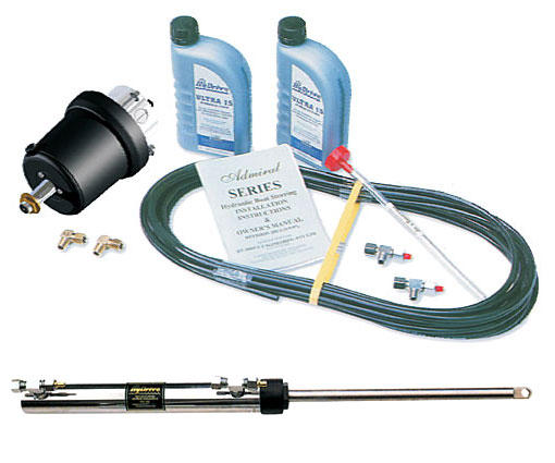 This kit contains the 210TSE (unbalanced) side mount steering cylinder and is a very popular cylinder for outboards and stern drives. It can handle up to 235HP single or 600HP counter-rotational dual outboards and is simple and cheap to install. The cylinder is designed to screw directly onto the outboard motor’s tilt-tube or pivot-tube in exactly the same way as conventional cable steering. Simply unscrew the old cable from the motor, screw on the HyDrive cylinder onto the same thread, install the fittings. It can also be fitted directly to splashwell brackets to replace any cable steering. It’s really that simple.